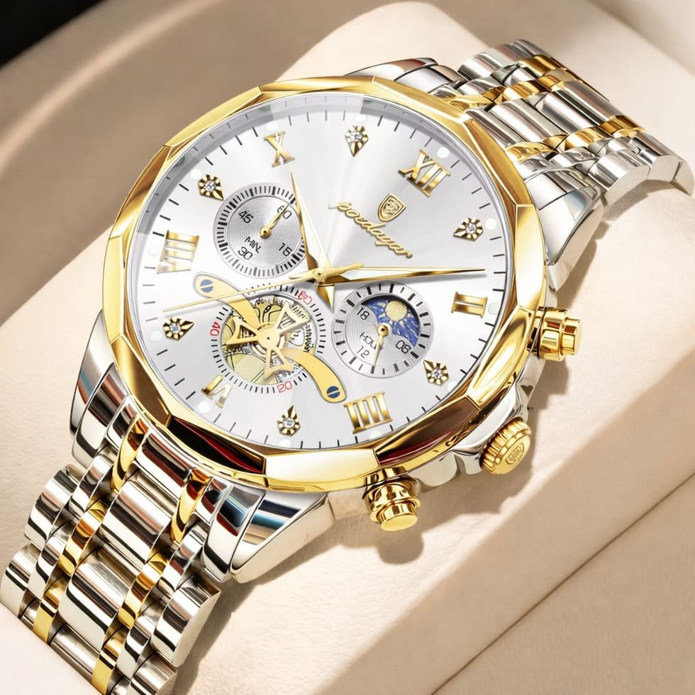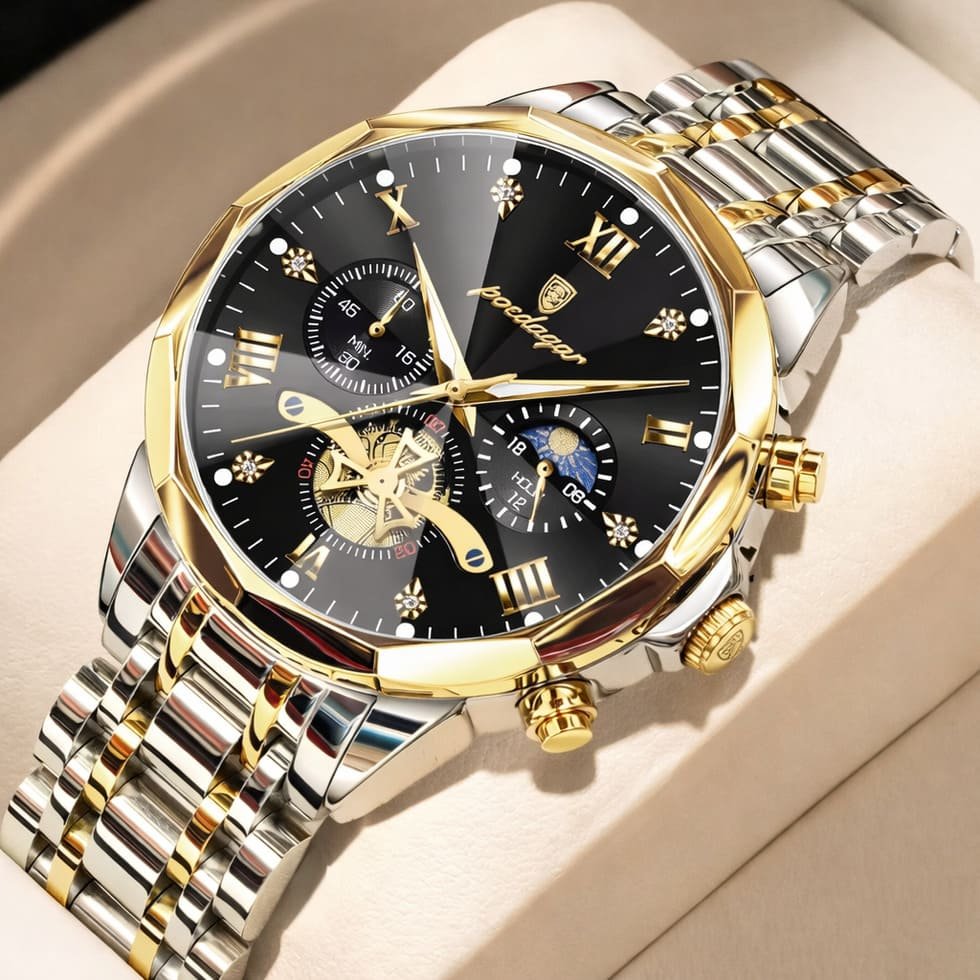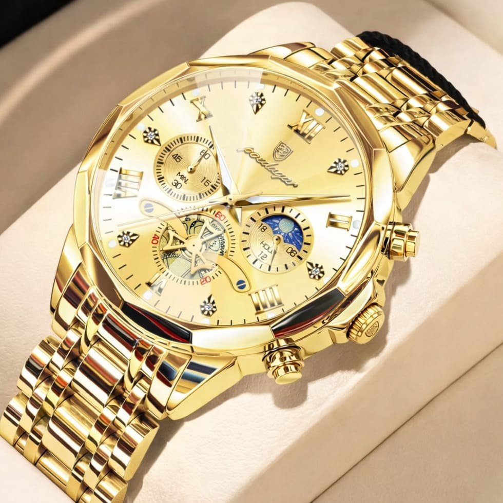 The watch looks and feels far more expensive than it is — the gold finish, weight and detailing get compliments every time I wear it. Perfect for business meetings and evenings out.